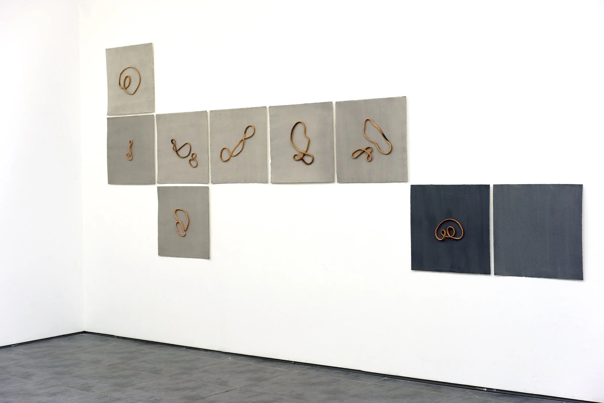 cotton paper, paint, polymer clay, thread 170x425x4cm